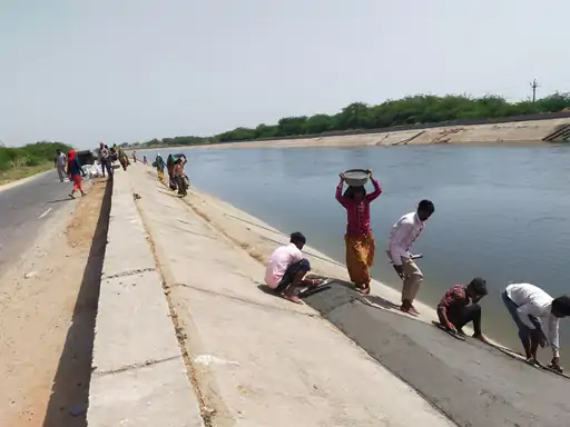 થરાદની નર્મદા કેનાલમાં પાણીનું વહેણ સરકારે સિંચાઇ માટે પાણી આપવાનું બંધ કર્યા બાદ પુનઃચાલુ કરતાં ફરી વધવા પામ્યું હતું. જો કે પાણીનો પ્રવાહ વધારે હોય કે ઓછું તેનો કોઇ જ ફરક પડતો ન હોય તેમ મહિલાઓ અને કારીગરો બિંદાબસ્તપણે માલ ભરેલાં તગારાં લઇને અવરજવર કરતા હતાં.આથી તેમનો પગ લપસવાથી પડી જવાથી તેમની સાથે દુર્ઘટના સર્જાવાની પણ દહેશત ઉઠવા પામી હતી.