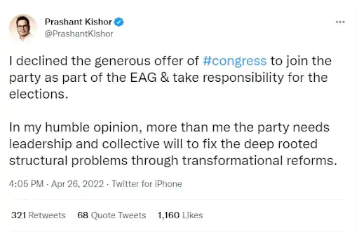 પ્રશાંત કિશોરે પોતે ટ્વીટ કર્યું હતું
