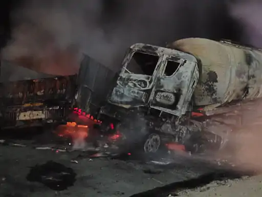 દિયોદરના કોતરવાડા પાસે ટેન્કર અને ટ્રેલર વચ્ચે સર્જાયો ગમખ્વાર અકસ્માત, બંને વાહનોમાં અકસ્માત બાદ લાગી આગ